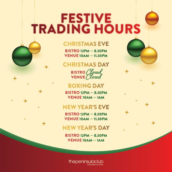 Our Christmas & New Year trading hours are locked in, ready to bring you plenty of festive specials and joyful moments.